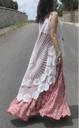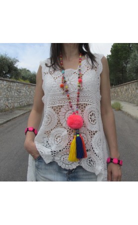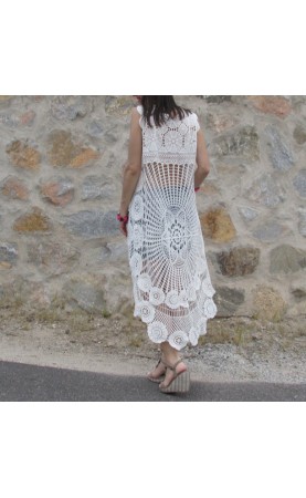 Blusa boho asimétrica en color blanco de ganchillo o crochet a maquina .