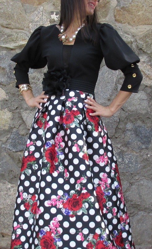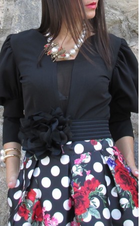 Blusa/top en color negro con manga abullonada y decorada con botones en color dorado .