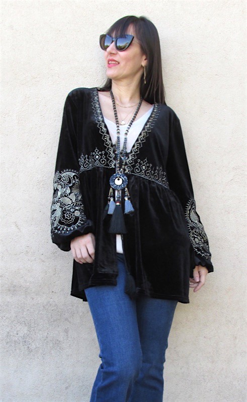 Chaqueta DORIN Terciopelo y Bordados Negro SisiChic