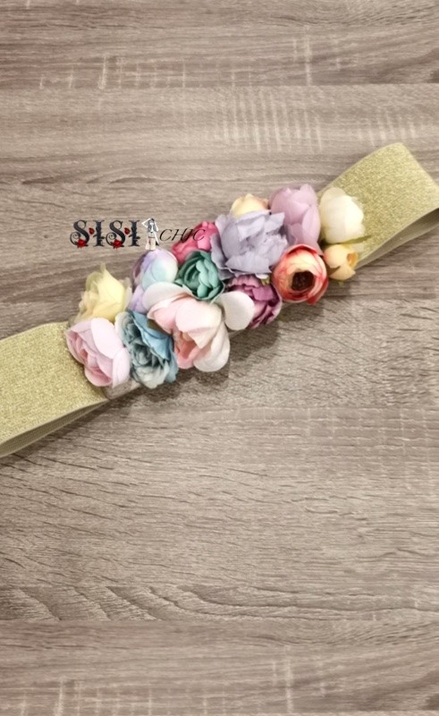 Cinturones Flores Dorado Elástico Fiestas Bautizos Ceremonias SisiChic