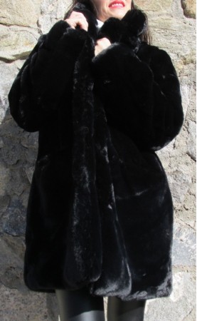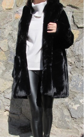 Abrigo Mimosín de pelo sintético color negro, pelo muy suave..